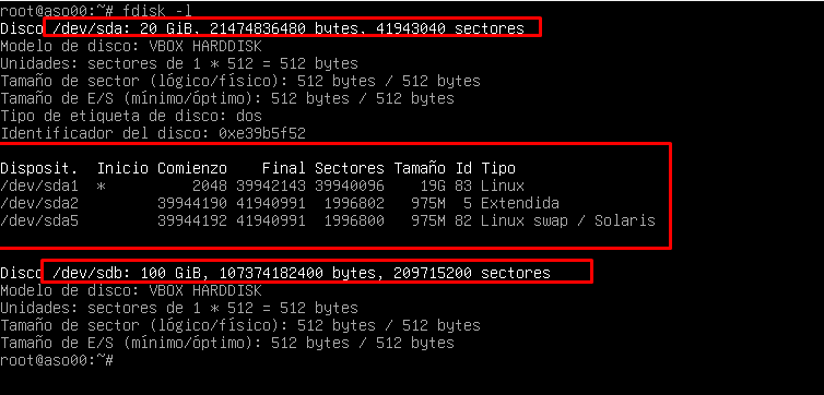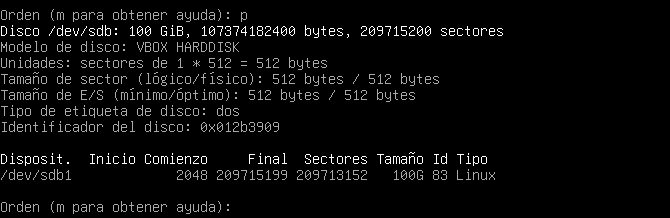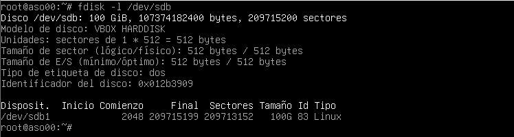 Vamos a mostrar la tabla de particiones con fdisk -l /dev/sdb para estar completamente seguros de que todo ha ido bien.