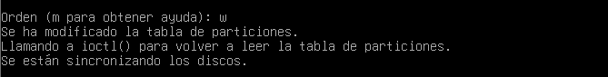 Con esto lo único que hemos hecho es crear un MBR y editar la tabla de particiones, es decir reservar un espacio de disco para una partición. No obstante, no hemos creado un nuevo sistema de ficheros en esa partición.