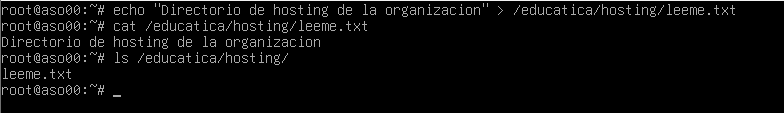 Vamos a añadir un pequeño fichero leeme.txt al directorio /educatica/hosting con información sobre el uso de este directorio.