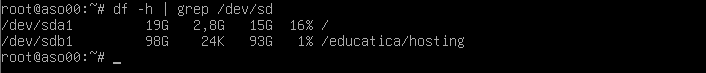 Para ello tendremos que crear el directorio /educatica/hosting si no existe. Este será el punto de montaje, es decir el directorio con el que enlazaremos o montaremos el sistema de ficheros de 100 GB.