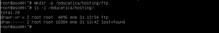 Esta guay, ¡ya funciona!. Vamos a crear un directorio dentro de /educatica/hosting con el nombre ftp que usaremos más adelante.