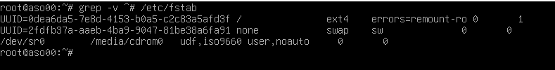 Vamos a ver el contenido del fichero de configuración /etc/fstab