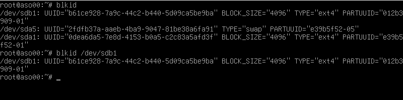 Vamos a utilizar blkid para obtener el UUID del sistema de ficheros que queremos montar