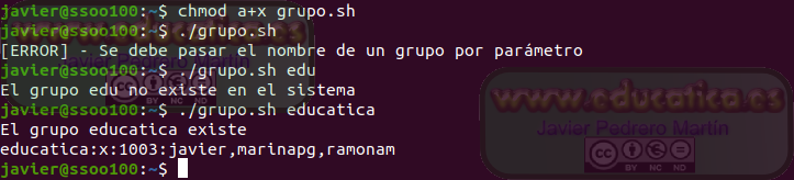 Ejercicios, GNU/Linux bash, Informática, Shell scripts, Sistemas operativos grupo.sh Publicado por javier en febrero 25, 2021 0 Comentarios Leer la siguiente → Clases de informática Jugando con scripts GNU/Linux bash Bash Shell Scripts – Explicación viernes 15/05/2020 GNU/Linux bash Caso práctico. Administrando un sistema Solución Páginas: 12 javier Leer la siguiente → Clases de informática Jugando con scripts GNU/Linux bash Bash Shell Scripts – Explicación viernes 15/05/2020 GNU/Linux bash Caso práctico. Administrando un sistema