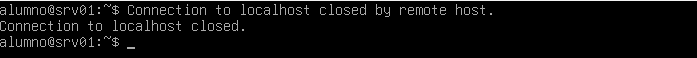 La mejor forma de comprobar que todo funciona como debería es probar la conexión a este servidor. Vamos a probarlo de forma local, es decir desde una terminal virtual diferente iniciamos sesión con el usuario alumno y tratamos de conectarnos a nuestra propia máquina utilizando el cliente ssh, que está instalado por defecto en esta distribución de GNU/Linux.