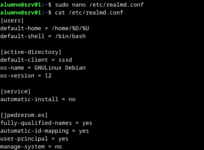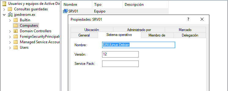 En este caso práctico vamos a añadir nuestro sistema GNU/Linux Debian 12 CLI al dominio jpedrerom.ex (NombreBase.ex) para que proporcione servicios a la organización a través del dominio que hemos montado en Active Directory con Windows Server 2016.