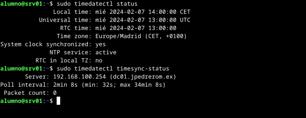 Comprobamos que hay resolución de nombres y conexión con el controlador de dominio.