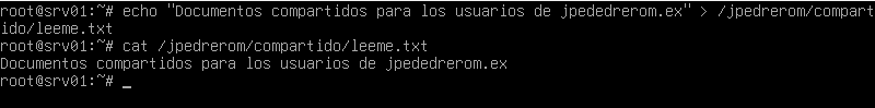 Ahora vamos a crear un fichero leeme.txt para mostrar información sobre le directorio compartido y, además, permitir que los usuarios puedan trabajar.