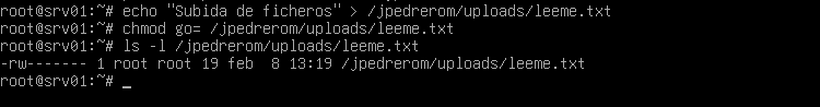 Vamos a crear otro fichero, uno que no se podrá modificar ni borrar dados los permisos que vamos a configurar, en el directorio del recurso compartido public.