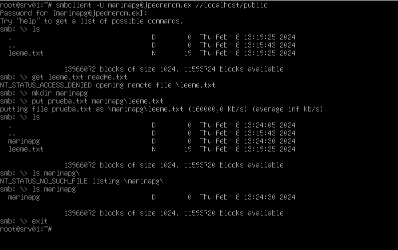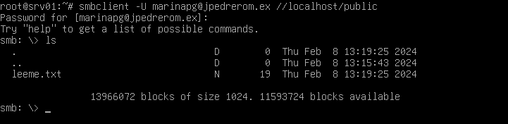 Ahora vamos a probar los accesos a ambos recursos, desde GNU Linux con smbclient primero y después desde Windows.