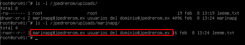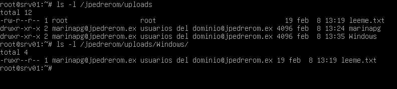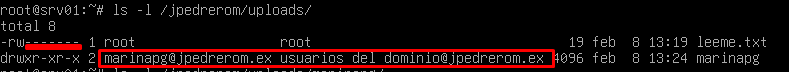 Es interesante ver cómo se ha asignado como propietario a marinapg@jpedrerom.ex y grupo usuarios del dominio@jpedrerom.ex. Esto nos da una pista, sobre todo en el último caso, de como configurar nombres de grupos del dominio.