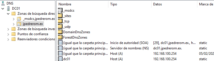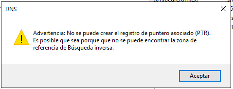 A diferencia de lo que sucede con los sistemas de escritorio de Windows, al unir el sistema srv01 con GNU/Linux al dominio, no se ha añadido automáticamente una entrada en el DNS para este equipo.