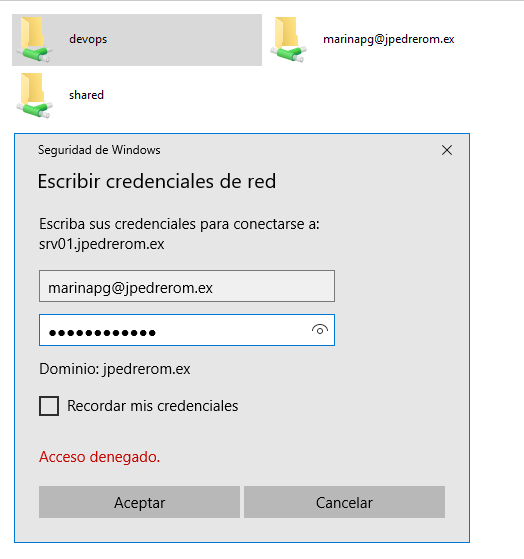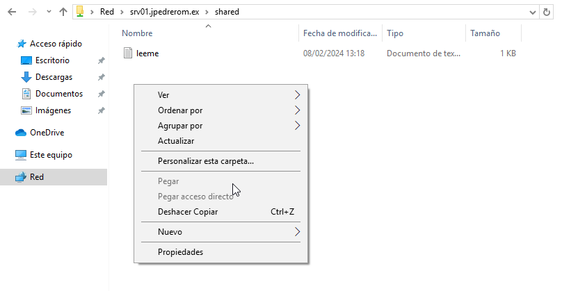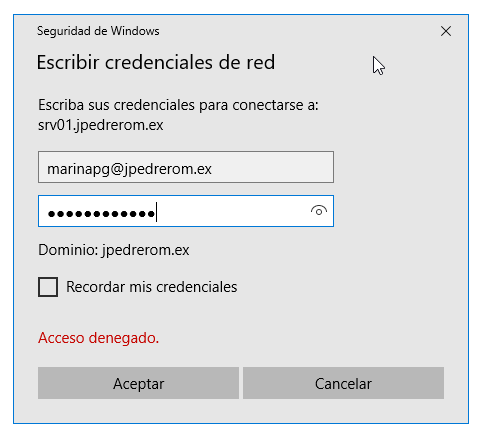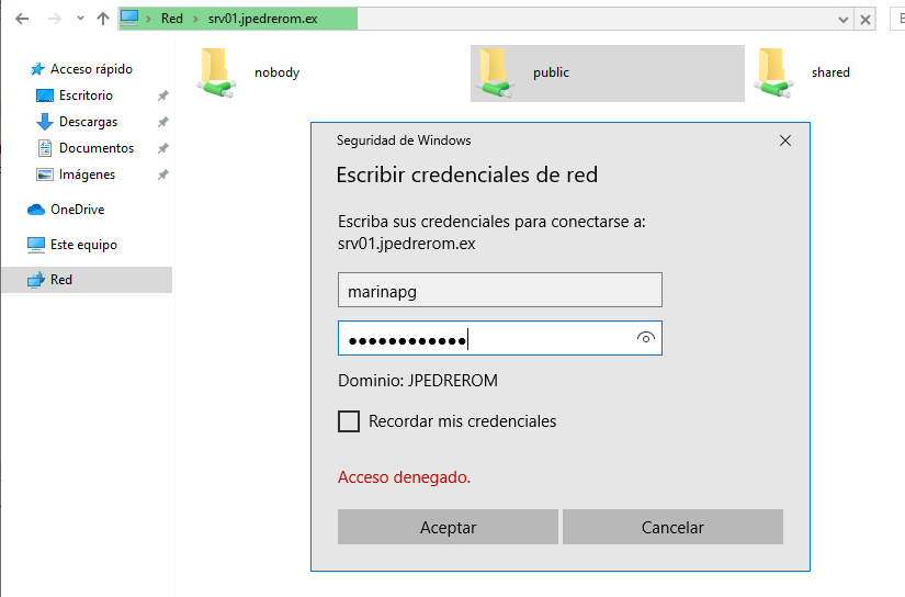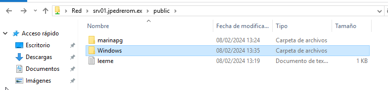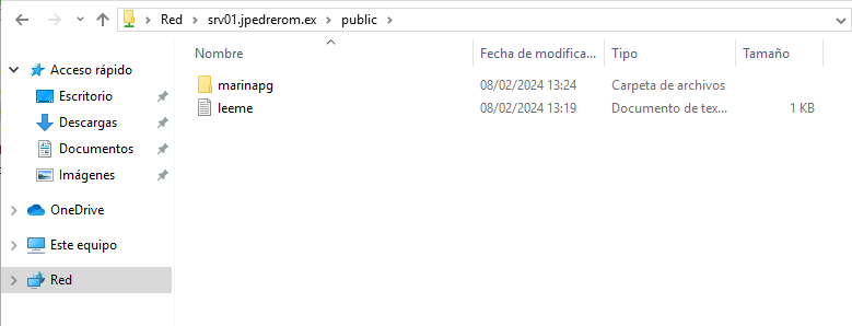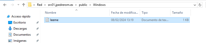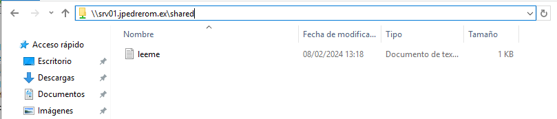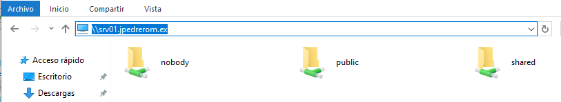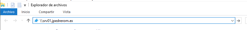 Vamos a conectarnos a través del explorador de windows para ver qué recursos tiene compartido este sistema srv01.jpedrerom.ex