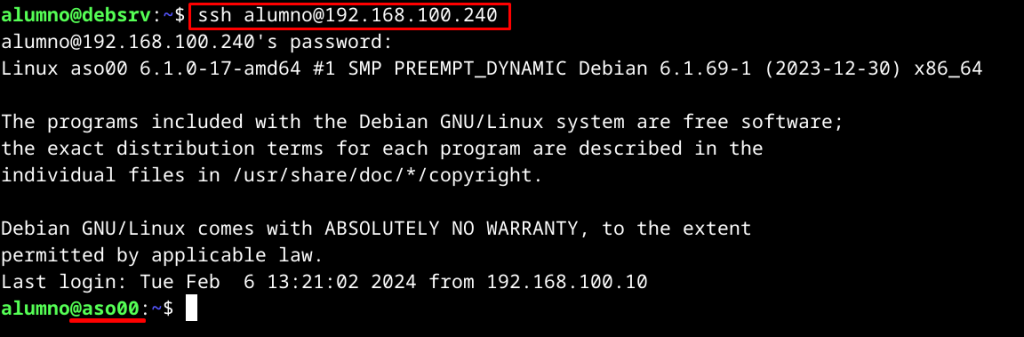 Vamos a unir el equipo ASO00 al dominio pero para ello, nos vamos a conectar con ssh desde el sistema GNU/Linux Debian 12 con entorno de escritorio.