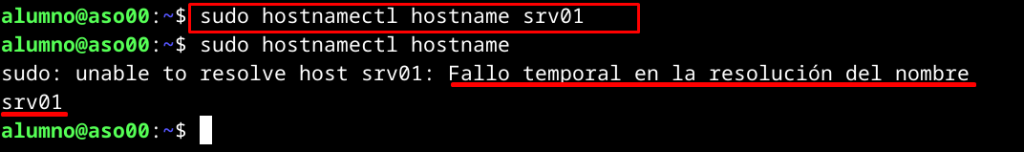 Aunque el nombre ASO00 está bien vamos a cambiarlo por otro para practicar. srv01.
