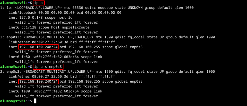Vamos a mostrar la configuración de red de nuestras interfaces de red.