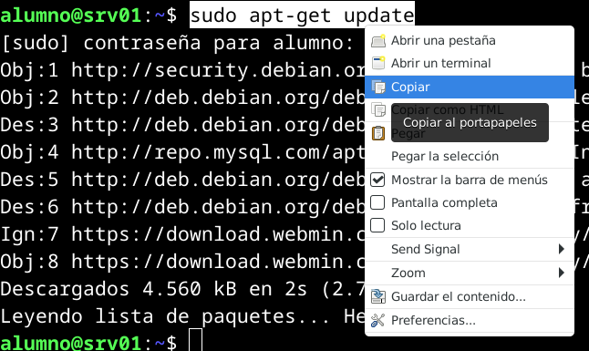 Copiamos y pegamos los comandos que vayamos ejecutando… Seleccionamos lo que queramos copiar y lo pegamos.