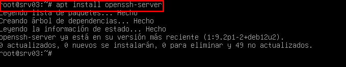 Ahora instalamos el paquete openssh-server.
