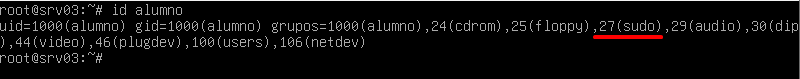 Como no nos gusta suponer sin pruebas, vamos a asegurarnos de que realmente el usuario alumno tiene permisos de ejecución de comandos como administrador.