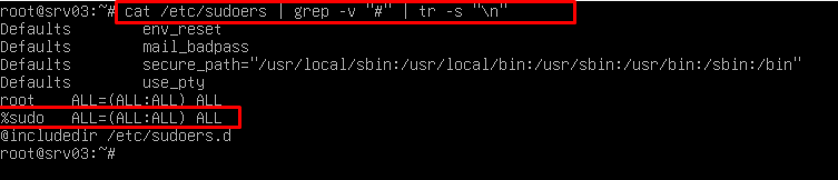 Vamos a echar un vistazo al fichero /etc/sudoers para ver quienes efectivamente pueden ejecutar comandos como root.