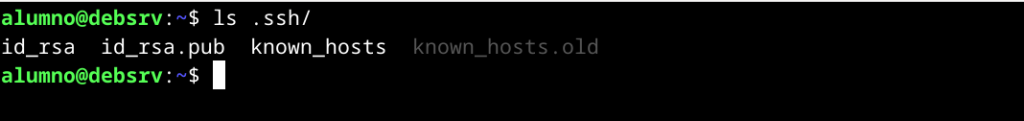 Vamos a comprobar si ya tenemos generado un par de claves RSA en el directorio .ssh de nuestro usuario alumno en el sistema Debian 12 XFCE.