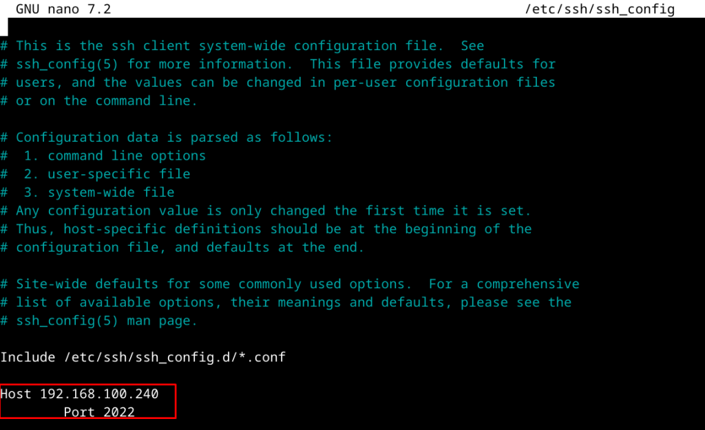 Editamos el fichero de configuración /etc/ssh/ssh_config en el cliente.