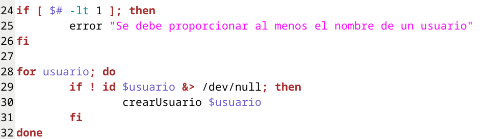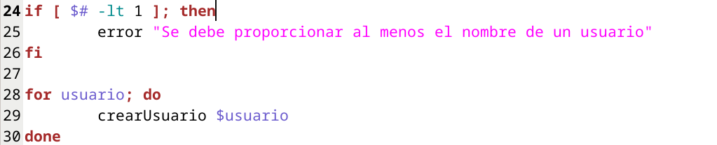 El script recibiría los nombres de las cuentas de usuario por parámetro en una lista variable de parámetros. Si no se pasa parámetro alguno se mostrará un mensaje de error y se proporcionará información de sintaxis de la herramienta.