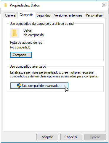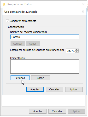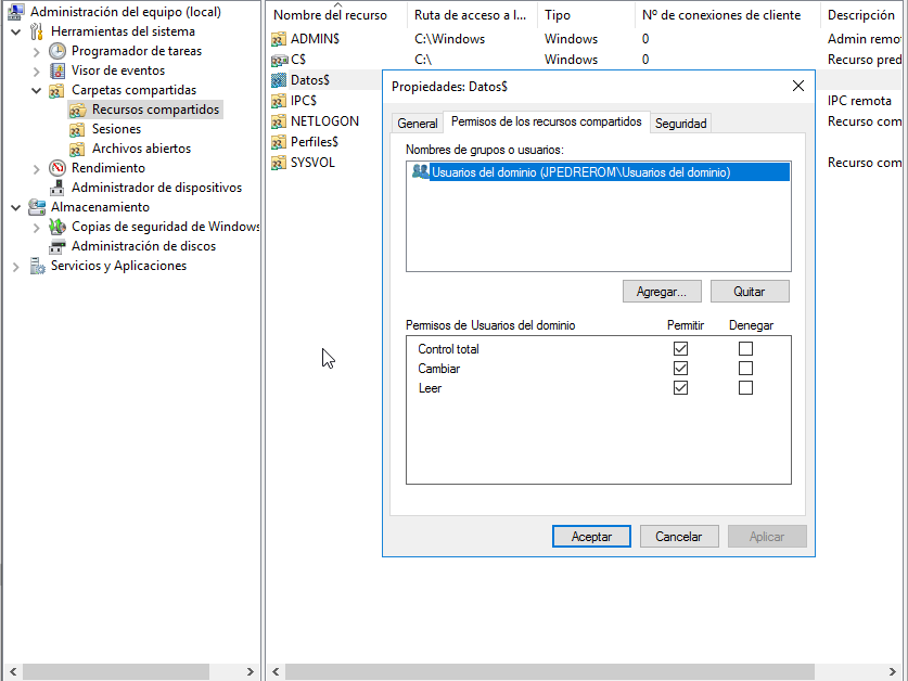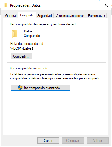 Lo compartimos en red como recurso compartido con la configuración de permisos usuarios del dominio y control total.