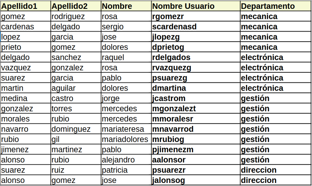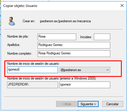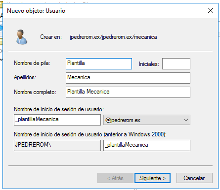 Antes de crear una plantilla de usuario, vamos a definir una pequeña nomenclatura que nos servirá para identificar estas cuentas de usuario especiales. Habitualmente estas cuentas de usuario comienzan con un guión bajo seguido con la cadena plantilla terminando con una cadena de texto que identifique para qué es esta plantilla. Por ejemplo, para crear usuarios de mecánica podemos utilizar: _plantillaMecanica.