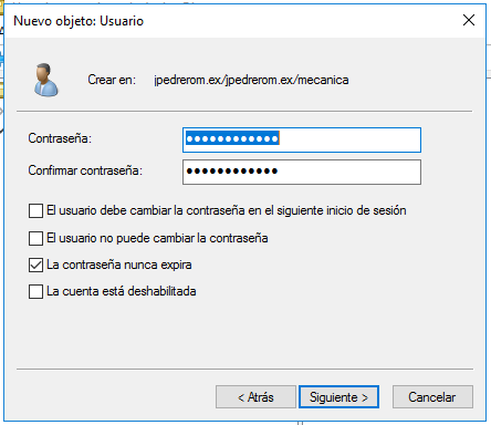 Como contraseña podemos utilizar una contraseña muy segura,porque esta cuenta no se va a utilizar para iniciar sesión (NO DEBERÍA) así que otra buena recomendación es deshabilitar la cuenta cuando termines de utilizarla.