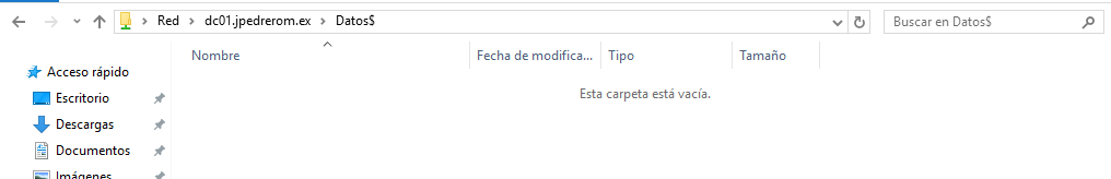No aparecen los recursos compartidos que estamos buscando porque están ocultos. Vamos a ver dos formas de acceder a estos recursos. La primera, a lo bruto, es decir escribiendo la ruta completa con el nombre del recurso compartido. Para nosotros esto no es ningún problema, porque acabamos de crearlos y configuralos.