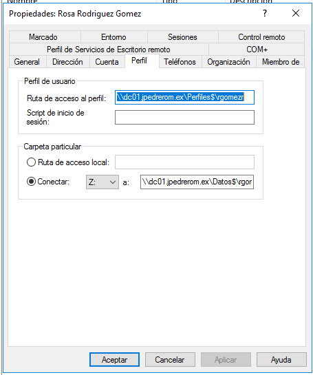 Además queremos que cada usuario tenga una carpeta particular almacenada en el servidor (cuidado con esto en un futuro) dónde pueda guardar información a través de la red. Se enlazará la carpeta particular con la letra Z: en el equipo del cliente.