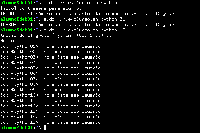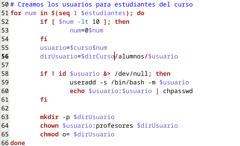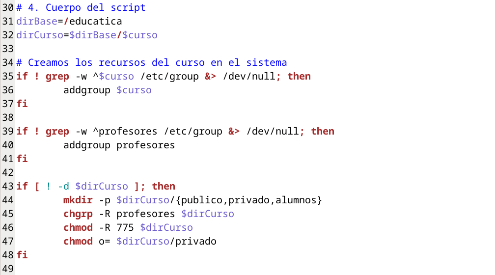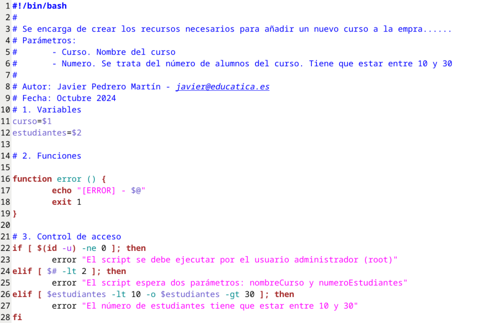 Este script está bien, no pasa nada por dejar mucho código en el cuerpo del script cuando la función del script está delimitada y el código no se va a reutilizar. No obstante, con fines académicos y para practicar, nos gustaría encapsular las dos funciones principales del script, crear un curso y crear un alumno de un curso, en sendas funciones. ¿Cómo lo harías?