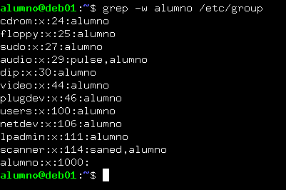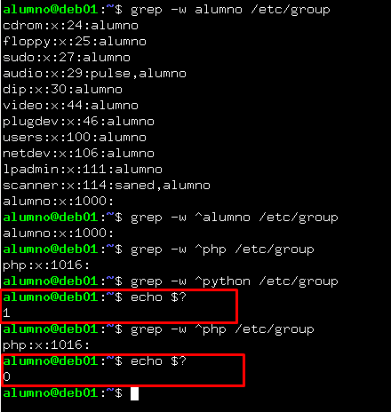 Nos muestra todas las líneas en las que esté la cadena «alumno». Queremos olo las que empiecen por alumno