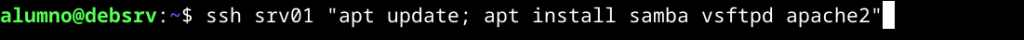 - Desde debsrv instalaremos los siguientes paquetes de software: vsftpd samba y apache2.