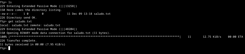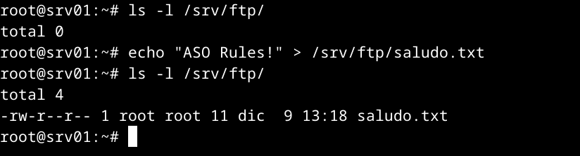 Al conectarnos con un usuario anónimo el directorio ráiz es el directorio publico o raiz del ftp que está actualmente vacío. Este directorio, por defecto, está almacenado en /srv/ftp.