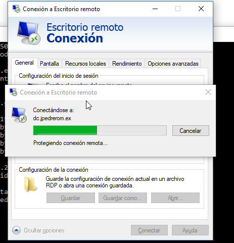 Ahora vamos a tratar de conectarnos utilizando la herramienta de escritorio remoto que tenemos en Windows 10
