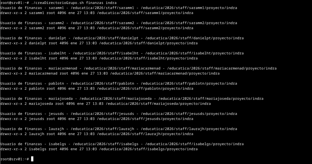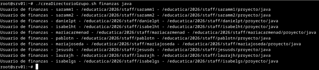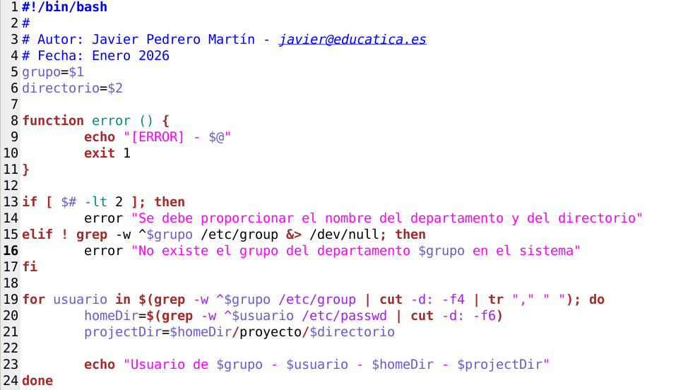 Para ello nos pide que creemos algún tipo de automatización que nos permita, en un momento dado, crear un directorio de trabajo cuyo nombre se proporcione por parámetro para los miembros de un grupo concreto, que también se proporcionaría por parámetro.