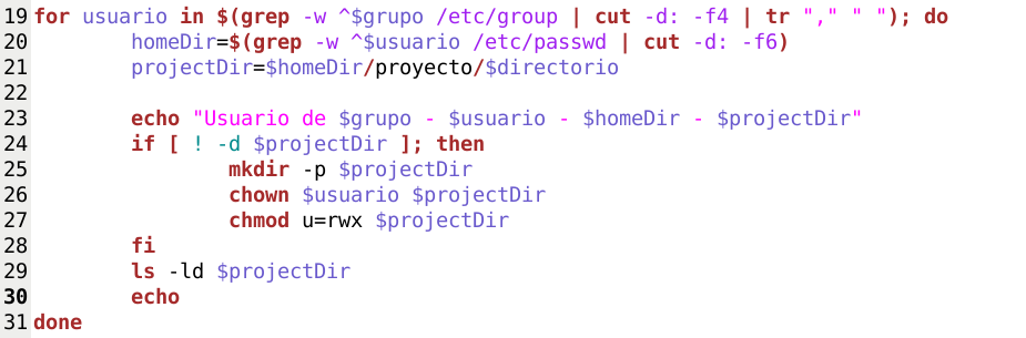 - Después, si no existe el directorio del proyecto proporcionado dentro de su directorio proyecto, lo creamos y lo configuramos para que el usuario pueda acceder y realizar cualquier operación.