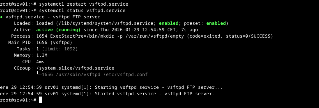 Por ejemplo, si creamos un fichero llamado leeme.txt dentro de /srv/ftp, ese fichero estará disponible con la dirección /leeme.txt dentro de nuestro servidor ftp.