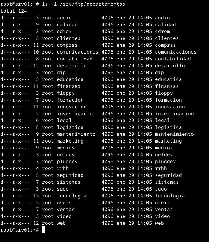 El directorio de cada departamento en el servidor FTP estará dentro del directorio departamentos, es decir /srv/ftp/departamentos.