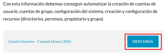 Con esta información debemos conseguir automatizar la creación de cuentas de usuario, cuentas de grupo, configuración del sistema, creación y configuración de recursos (directorios, permisos, propietario y grupo).