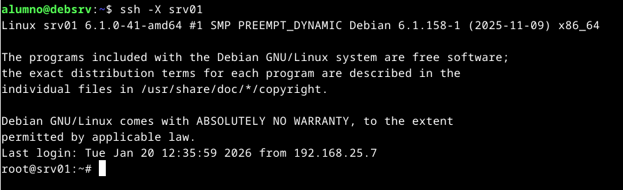 Iniciamos sesión en remoto con ssh exportando las X para que se muestren ventanas gráficas en nuestro sistema.
