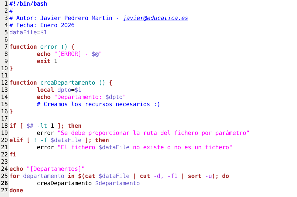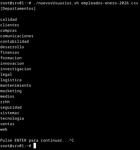 En esta actividad vamos a crear un script que se encargue de crear cuentas de usuario y de grupo en el sistema, así como los recursos necesarios para cada usuario y grupo en base a los requisitos que nos soliciten.