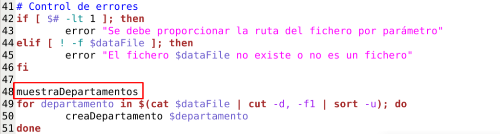 Invocamos la función antes de entrar en el bucle que se encarga de crear los recursos de cada departamento en caso necesario