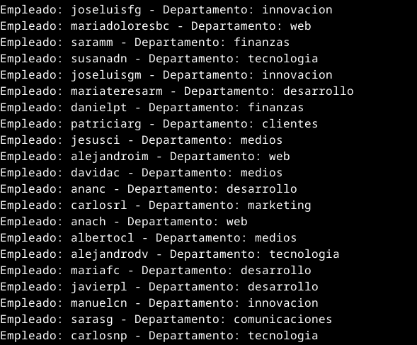 Primero mostraremos una lista con los departamentos, esperamos a que el usuario pulse Enter para continuar y después crearemos los recursos necesarios para cada departamento.