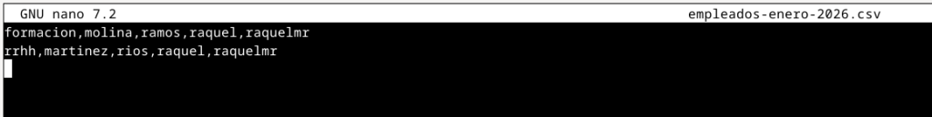 - Esté dentro del directorio /educatica/2026/staff con el nombre del usuario