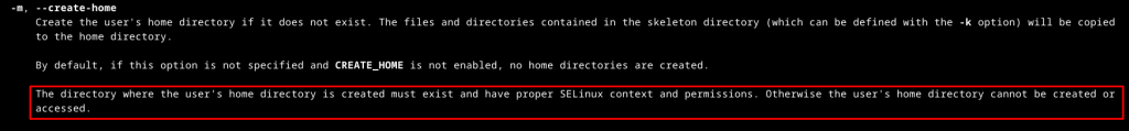 Con esto nos aseguramos de que existe el directorio. Vamos a ver cómo ejecutaríamos el comando useradd