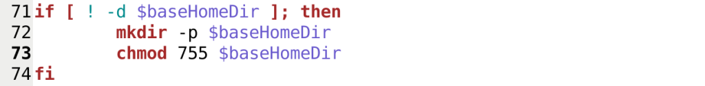 Comprobamos si no existe el directorio baseHomeDir para crearlo y configurarlo antes de realizar ninguna operación en el script, puesto que es necesario que este directorio exista para poder crear directorios home de los empleados dentro.