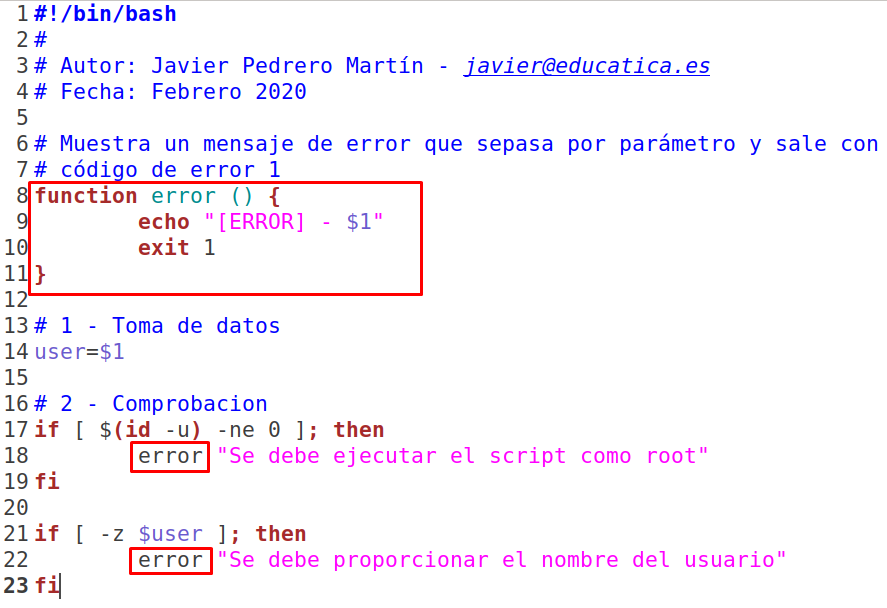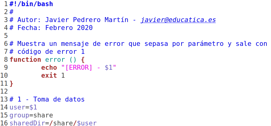En la primera parte del script creamos las funciones que utilizaremos y obtenemos los datos con los que vamos a trabajar, por parámetro, teclado o con valores estáticos que se repetirán a lo largo del script, guardándolos en variables.